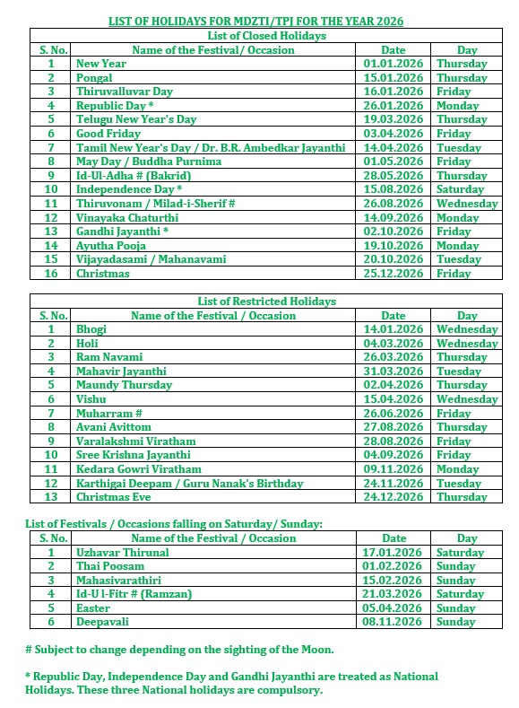 MDZTI/TPJ-Annual Training Calendar 2026-2027